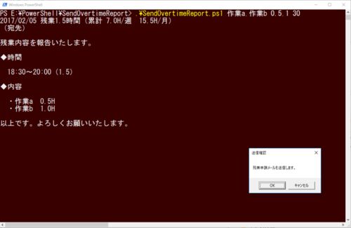 タイトル:2017/02/05 残業1.5時間(累計 7.0H/週 15.5H/月) (宛先) 残業内容を報告いたします。 ◆時間 18:30~20:00(1.5) ◆内容 ・作業a 0.5H ・作業b 1.0H 以上です。よろしくお願いいたします。 私の会社では上のような残業申請メールを退社前に送信…